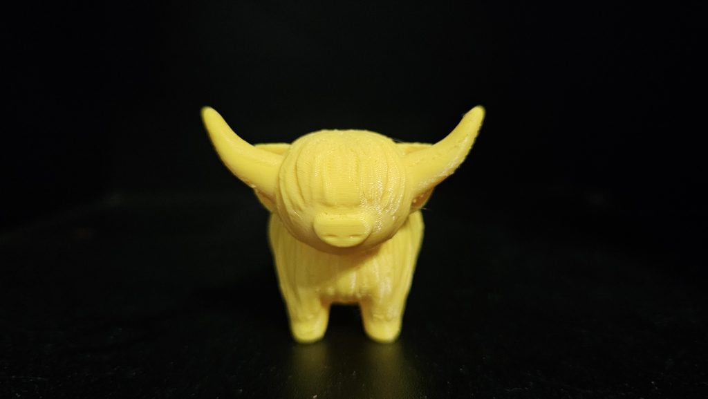 This is a cow printed in a bright yellow TPU filament. This makes it soft and squishy. It is great to use as a stress ball and will hold up well to general wear.
